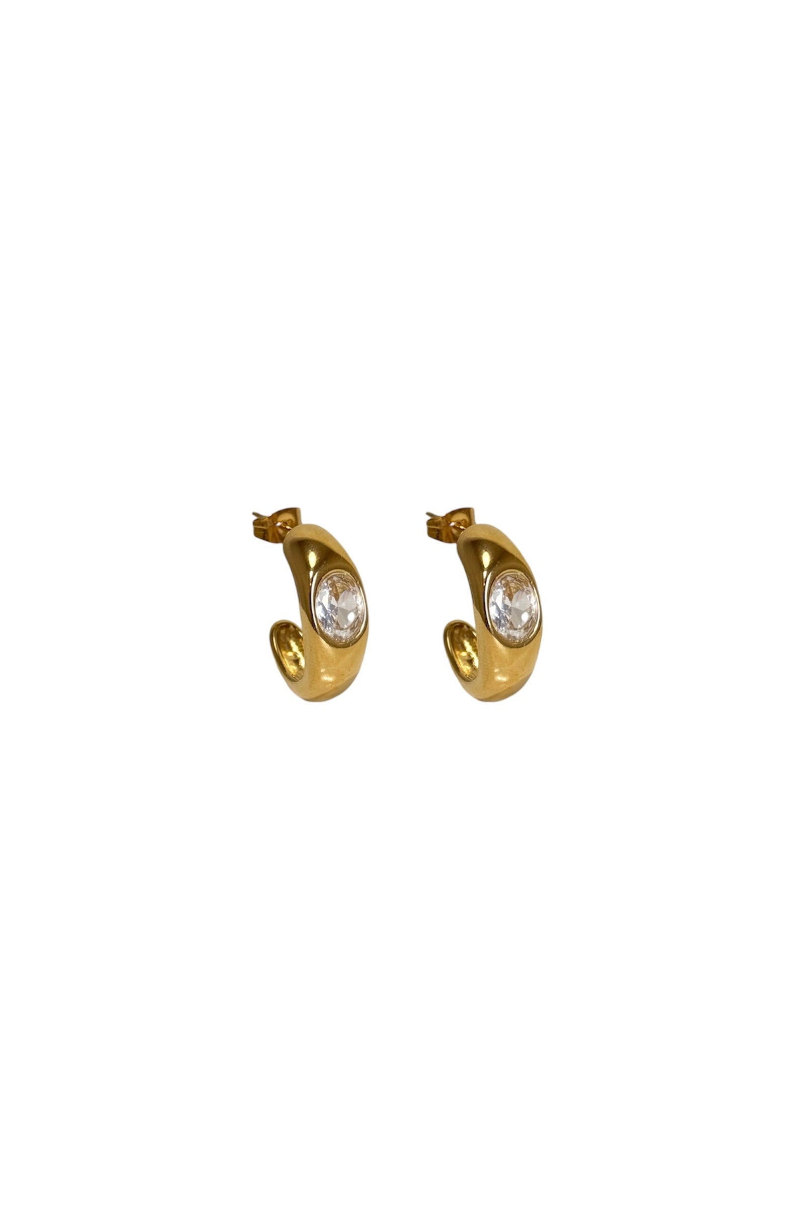 Brincos em aço inoxidável com zircónia ao centro.