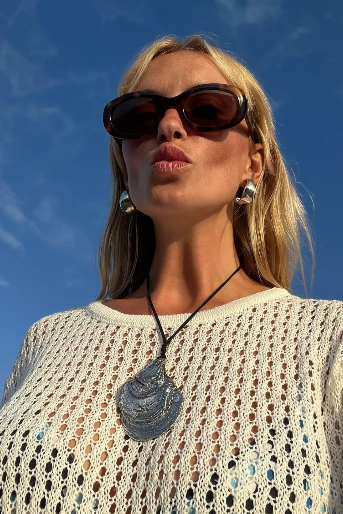 Fio em antelina com detalhes em aço inoxidável e pendente em zamak.