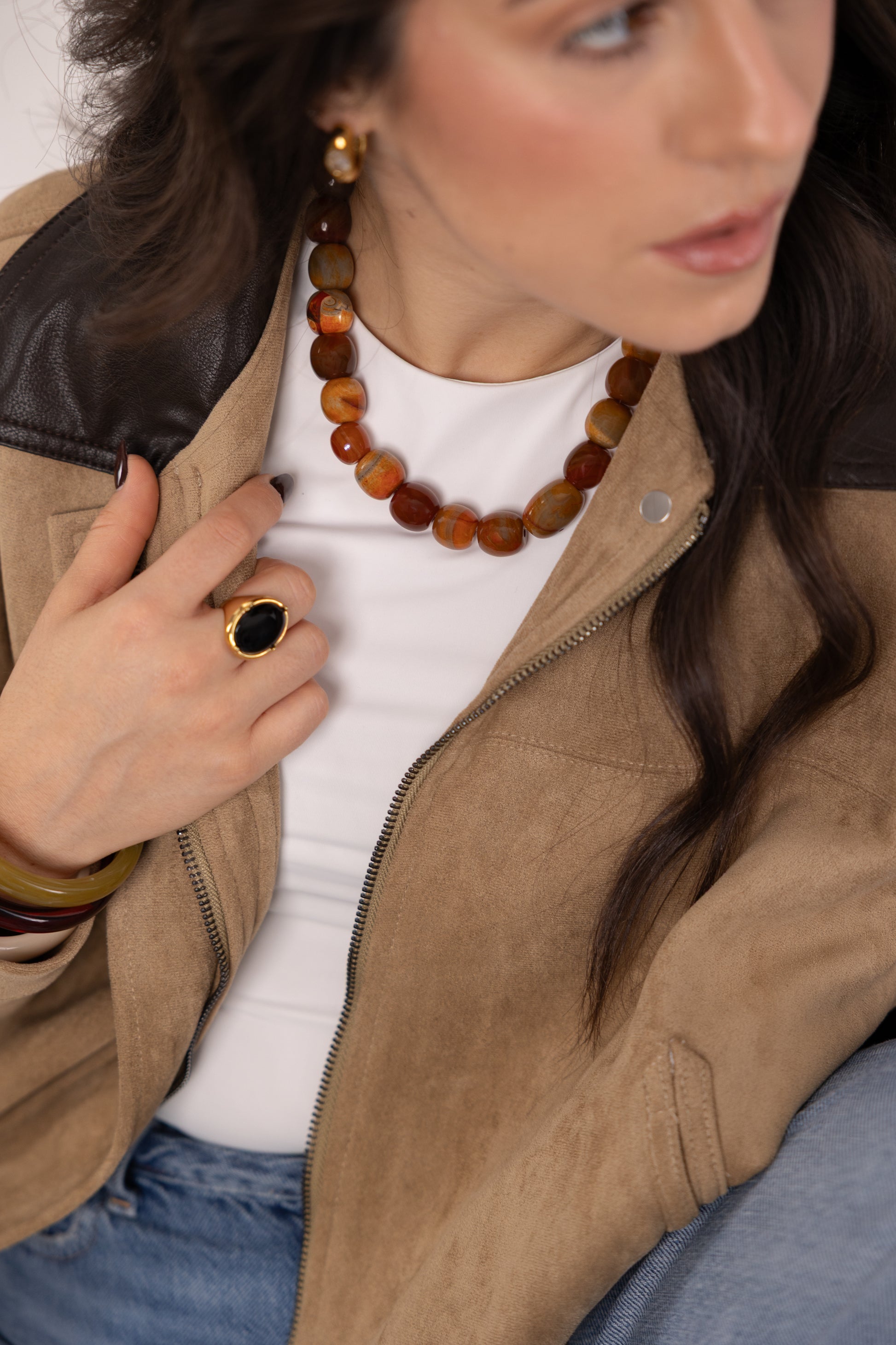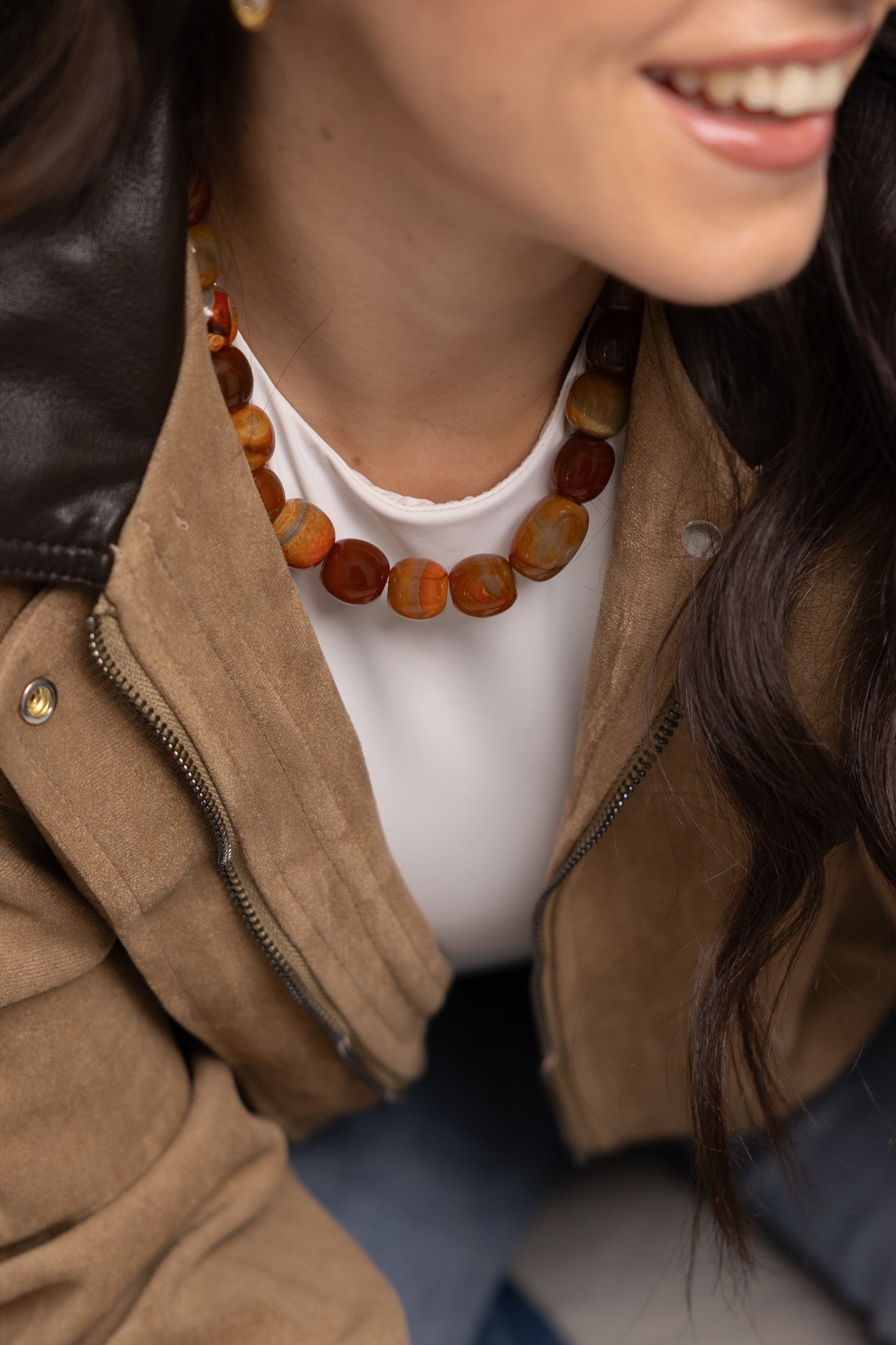 Colar em pedras naturais com fechos em aço inoxidável.